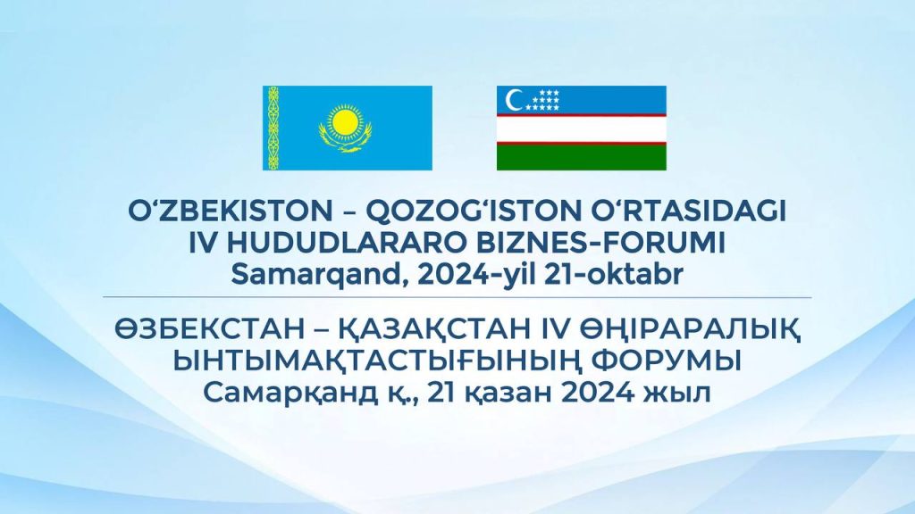 2024-yil 21-oktabr kuni Samarqand shahrida O‘zbekiston-Qozog‘iston o‘rtasidagi «IV-Hududlararo biznes-forumi» bo‘lib o‘tadi.