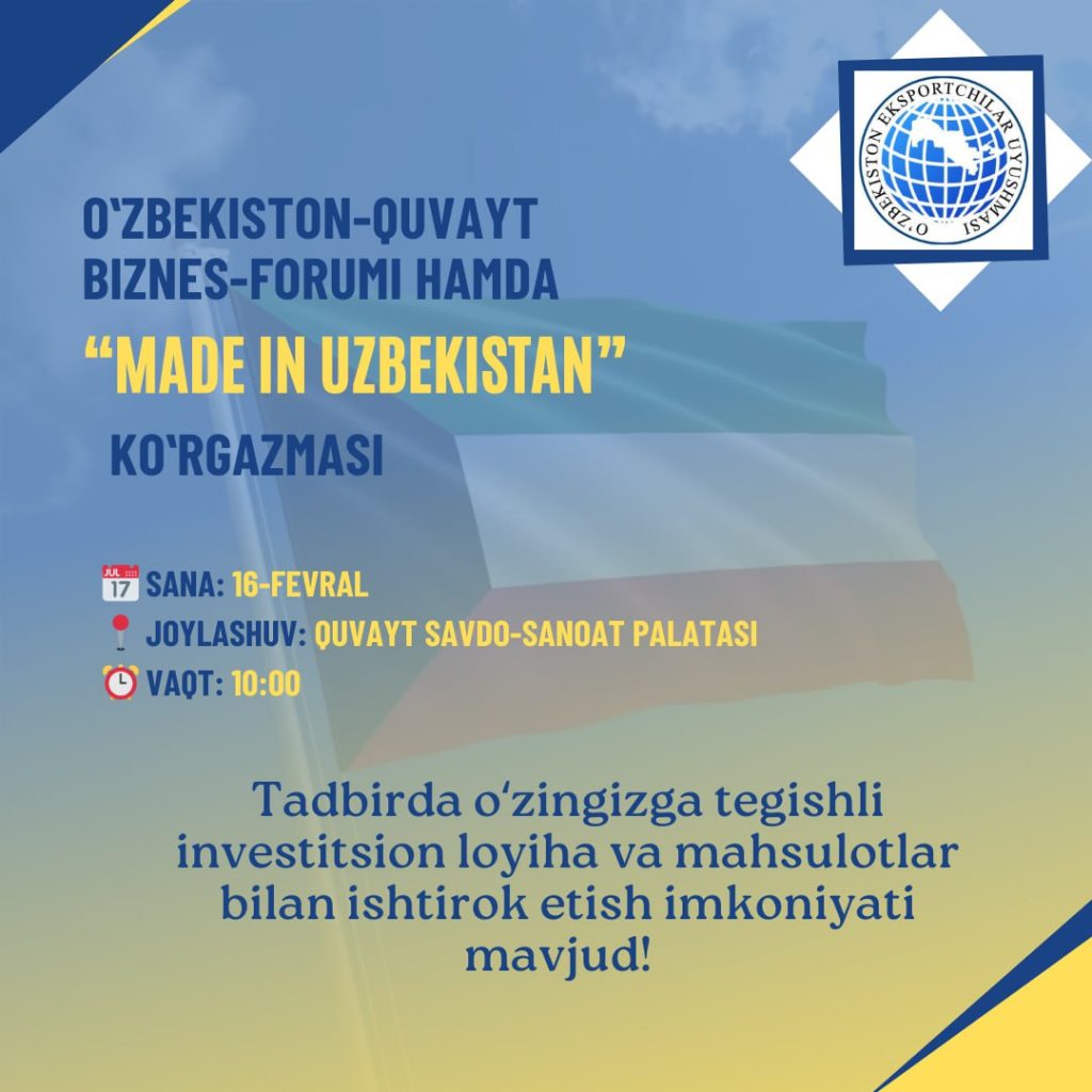 Oʻzbekiston-Quvayt biznes-forumi va “Made in Uzbekistan” koʻrgazmasi
